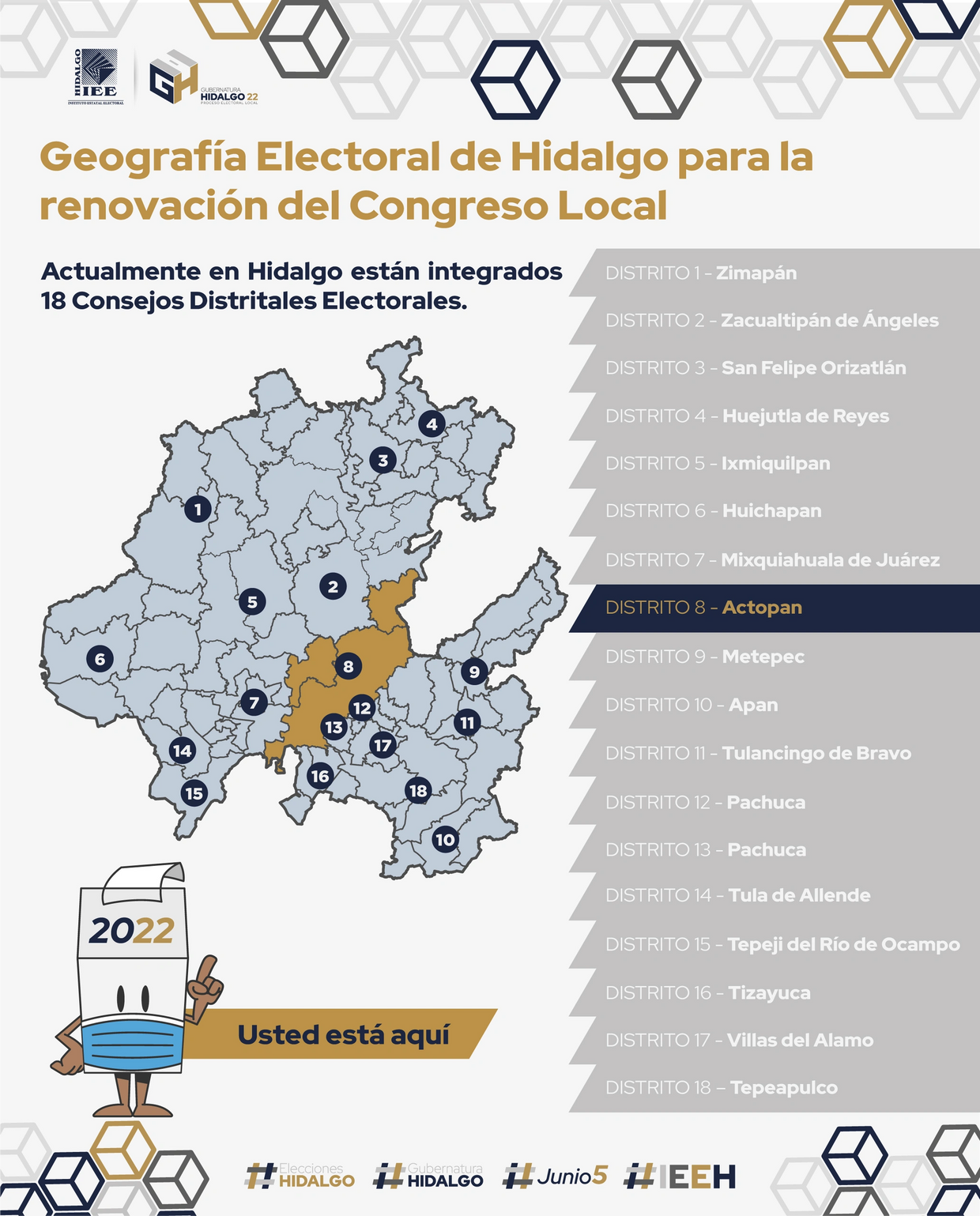 Esta Demarcación Territorial Distrital tiene su Cabecera ubicada en la localidad ACTOPAN perteneciente al municipio ACTOPAN, asimismo, se integra por un total de 6 municipios, que son los siguientes: